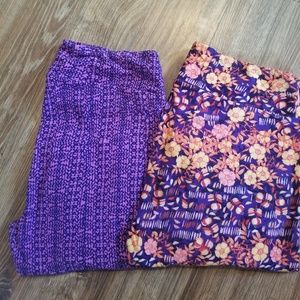 2 pairs of leggings, both are TC. The pair with the orange was worn twice and hand washed. The all purple pair was never worn, just tried on. Smoke free home