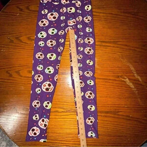 Lularoe Tween Leggings Halloween Skulls Floral All Over Print Purple Background