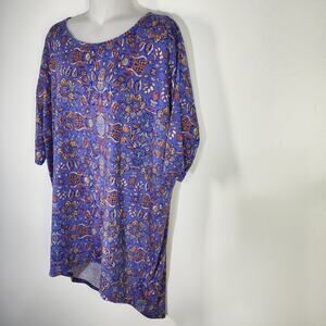 Lularoe Women Irma Tunic T Shirt Multicolor Size Medium Floral Round Neck Hi-Low