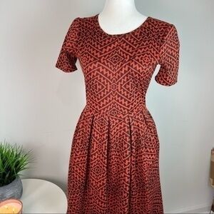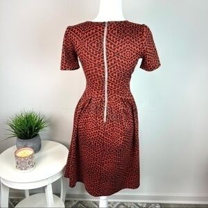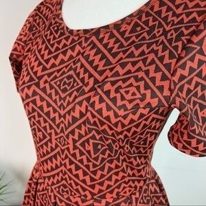 Lularoe Womens A Line Dress Red Black Geometric Stretch Scoop Zip Short Sleeve S