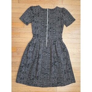 Lularoe Womens Amelia Dress Small Geometric Aztec Black Gray Casual Stretch