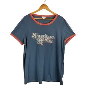 Lularoe Women's American Mama Ringer T-Shirt Blue Red Size 2X