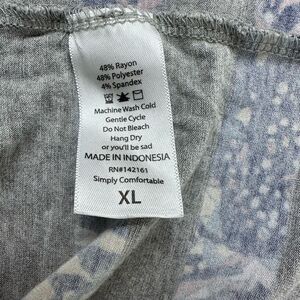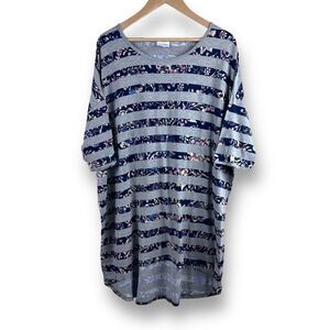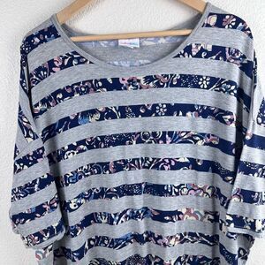 Lularoe Womens Blue Gray Floral Striped Stretch Short Sleeve Blouse Top Tunic XL