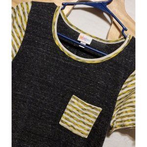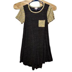 Lularoe Women's Heathered Gray stripe sleeves Carly Swing Dress Size XS