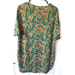 Lularoe Women's Irma Short XS Sleeve Tunic Green Feathers Paisley Print