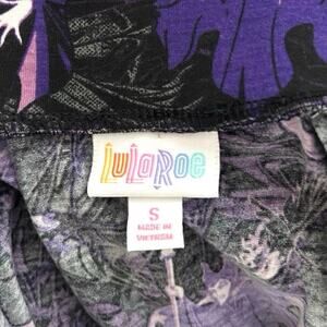 Lularoe Madison Disney Villians Maleficent skirt size small. Thick elastic waistband with box pleats and hidden side pockets. Black with a purple and green Maleficent pattern all over. Stretchy and comfy and perfect for Halloween. Excellent condition! 95% polyester and 5% spandex. Measurements: length- 23 inches and Waist (laying down flat)- 14 inches.