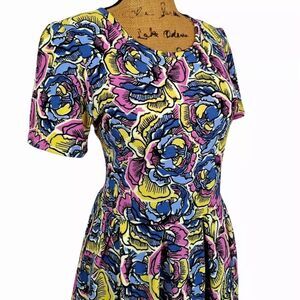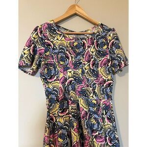 Lularoe Women’s Size Large Fit and Flare Dress Multicolor Floral Short Sleeve