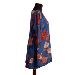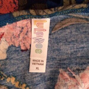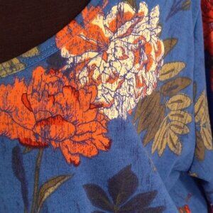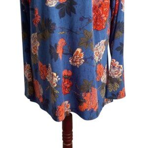Lularoe XL Tunic Top Floral Print Long Sleeve Blue Pink Tee Shirt Hi-Low Stretch