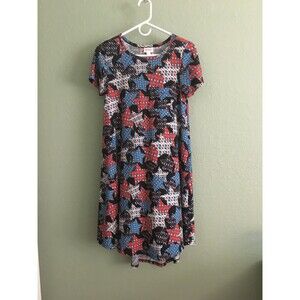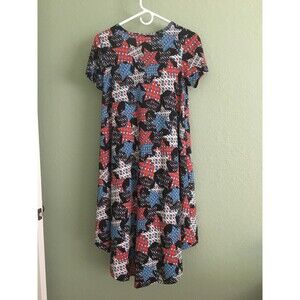 Lularoe XXS 4th Of July Blue Red White Stars Short Sleeve High-Low Knit Dress