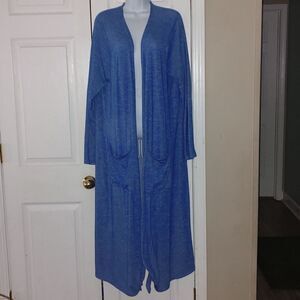 Lularoe blue with white stripe open front long cardigan duster Sz XL