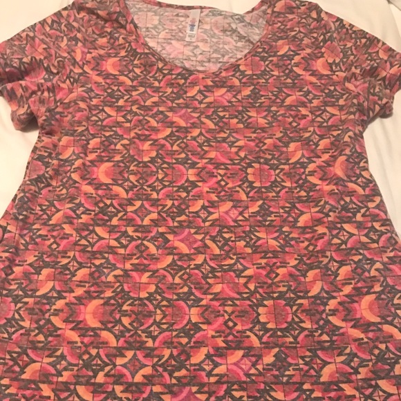 Lularoe classic tee extra large worn once orange pink and black Aztec print