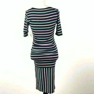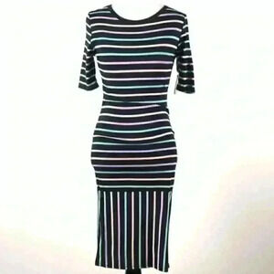 New Lularoe womens dress size XXS 00-0 Julia multicolored striped pastel pencil 3/4 sleeve