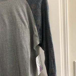 NWT never worn. Hearhered gray body, dark grayish blue sleeves with faint dot design