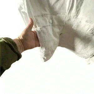 Lularoe large custom Morgan Wallen white brushed cotton denim Moto jacket.