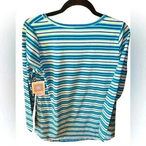 Lularoe medium blue green, pink striped Lynnae long sleeve t shirt. NWT