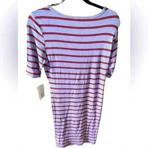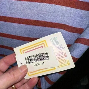 Lularoe medium denim blue & burgundy stripe Julia pencil dress . NWT