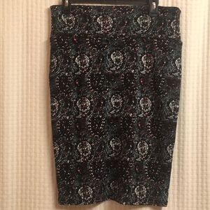 Lularoe skirt stretch abstract paisley pattern black green red festive