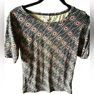 Lularoe small Gigi top . Light blue, orange, black. Legging material. Eyeballs!