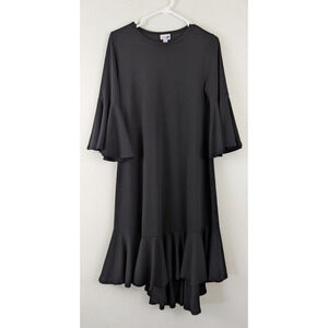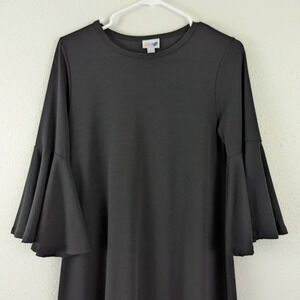 Lularoe sz S Maurine Dress black slinky stretchy 3/4 bell sleeves midi 3136