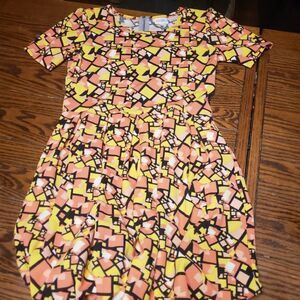 Lularoe Amelia pink&yellow abstract dress sz Medium