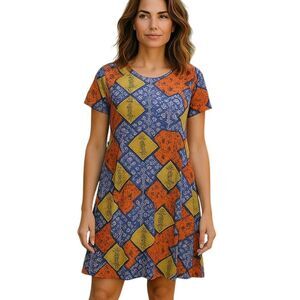 A staple in the LuLaRoe Collection, the Carly is a swing dress that effortlessly flatters the feminine physique. Featuring a charming patch pocket, a high-low hemline, and open sleeves.