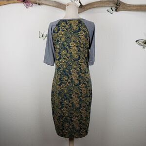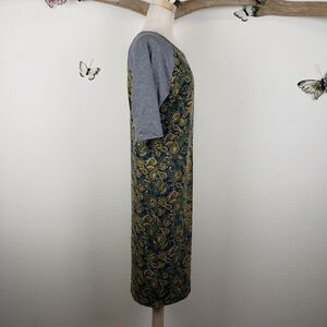 New without tags lularoe Julia khaki green and navy paisley pattern with gray raglan sleeve
