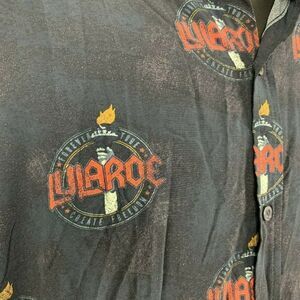 Lularoe Michael Button Up Shirt L Black Logo