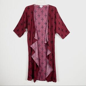 Lularoe Red & Black Pattern Long Waterfall Kimono