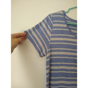 LULAROE | Womens T-shirt size M blue\gray stripe hi-lo hem flat lay: 19 bust 26-29 length