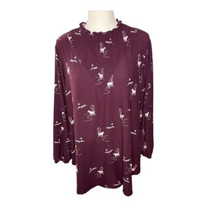 Lularoe Women’s Large Burgundy Clara Smocked Blouse With Retriever Dog Duck Bird