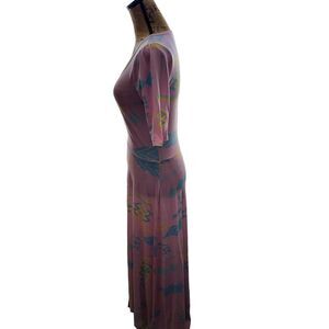 Size medium 17" armpit to armpit 55" long 3/4 sleeve 96% polyester 4% spandex