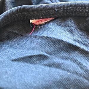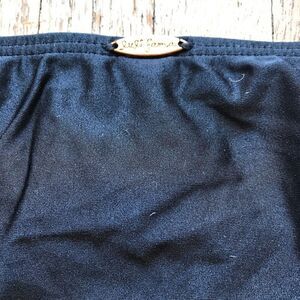 Two of the squares in front are missing. An easy fix. Price reflects. No size tag. Waist laid flat is 13 inches