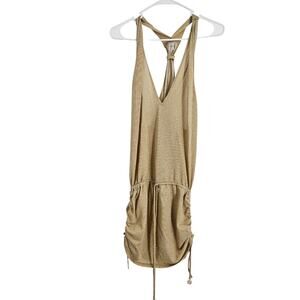 Luli Fama Cosita Buena Mini Dress Gold Metallic Sleeveless Racerback Size S