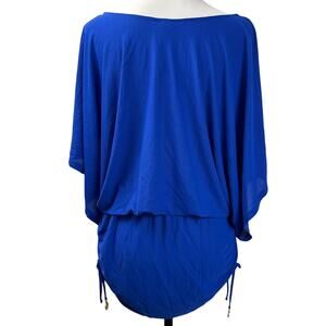 Luli Fama Dress Cover-up Cosita Buena Size XS Blue Scoop Neck Flutter Sleeves