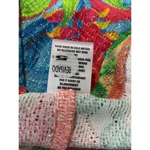 Palm Breeze Tank is Mini Dress by Luli Fama. This playful mini features a colorful tropical-inspired print in multicolor hues, perfect for beach getaways, poolside parties, or casual summer outings. Condition notes:Fabric pulls on the back left and on the left side seam. Thread pull on lower front near the hem.
