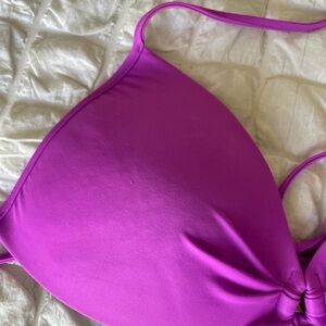 Experience the allure of the Luli Fama Purple Bikini, crafted with a classic triangle style and halter straps for a flattering fit. The smooth, shiny fabric enhances its elegant appeal, making it a standout piece in any swimwear collection.