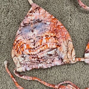 Chic snake print bikini set. Triangle top with ties. Coordinated bottom for a sleek look.