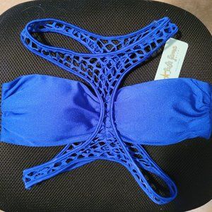Luli Fama Sailor's Kiss Fishnet Swim Top in Electric Blue, Size Small (NWT)