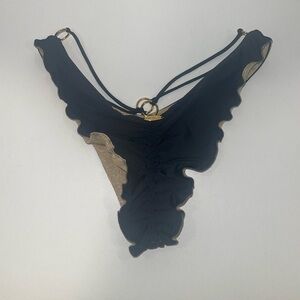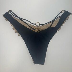 Luli Fama Strappy Loop Brazilian Bikini Bottom Black Gold Ring Bikini Bottom Sm