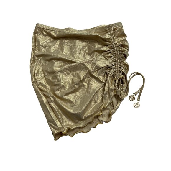 Luli Fama Wavy Luxe Stitch Scrunched Up Mini Skirt in Gold Rush