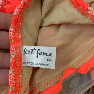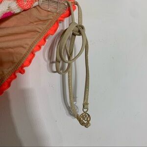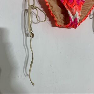 Luli Fama crochet knit Chevron neon metallic string tie rouged bikini bottoms sm