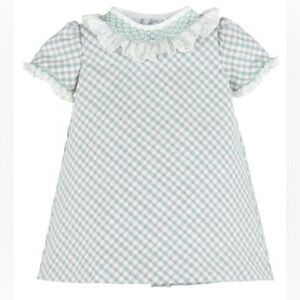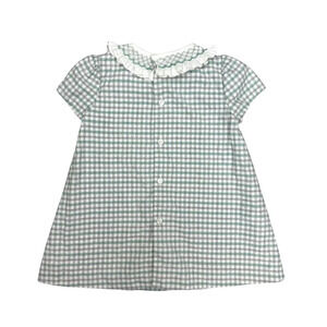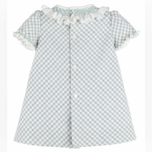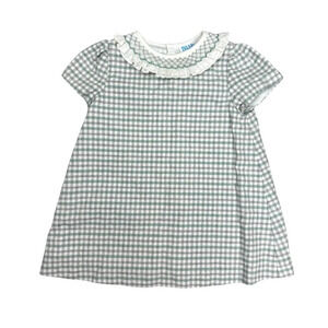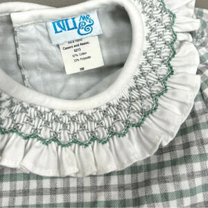 Luli & Me Girls 9M Green Gray Gingham Plaid Smocked Ruffle Neck Dress Buttons