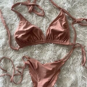 Luli fama DD top. Rose color. Wavey ruched tie side bottoms size small