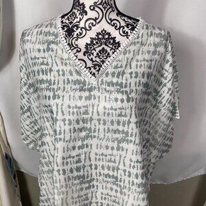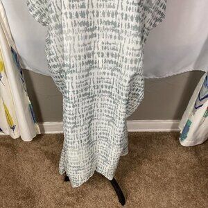 Lulla Collection by Bindya Gray White Tie Dye Caftan Dress OS – V-Neck Lace Trim