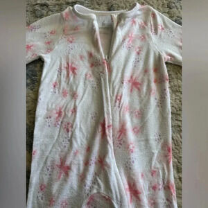 Lullaby Lane White & Pink Zippered Footie Pajamas Size 6-9 Months Sleepsuit