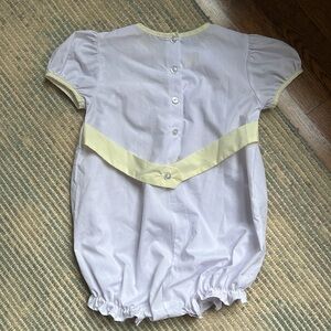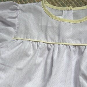 The sweetest white with bitty pink dots and light yellow trim! Excellent condition size 3T smoke free home