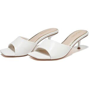 Lullasong Kitten Heels White Faux Leather Women's Sandals Slides Square Open Toe