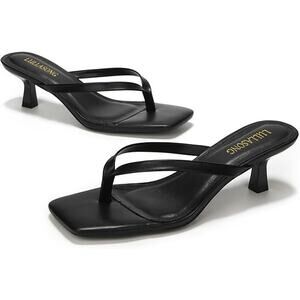 Lullasong Womens Size 7.5 Black Open Toe 2.5" Kitten Heel Slide On Sandal Shoes