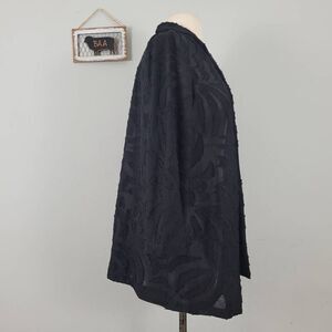 Lulu B Black Open Front Cardigan, Semi Sheer, Textured Designs, Neutral lightweight.