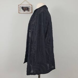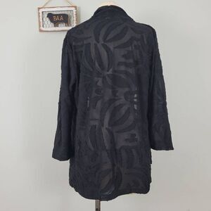 Lulu B Black Open Front Cardigan Sz M Semi Sheer Textured Designs Neutral